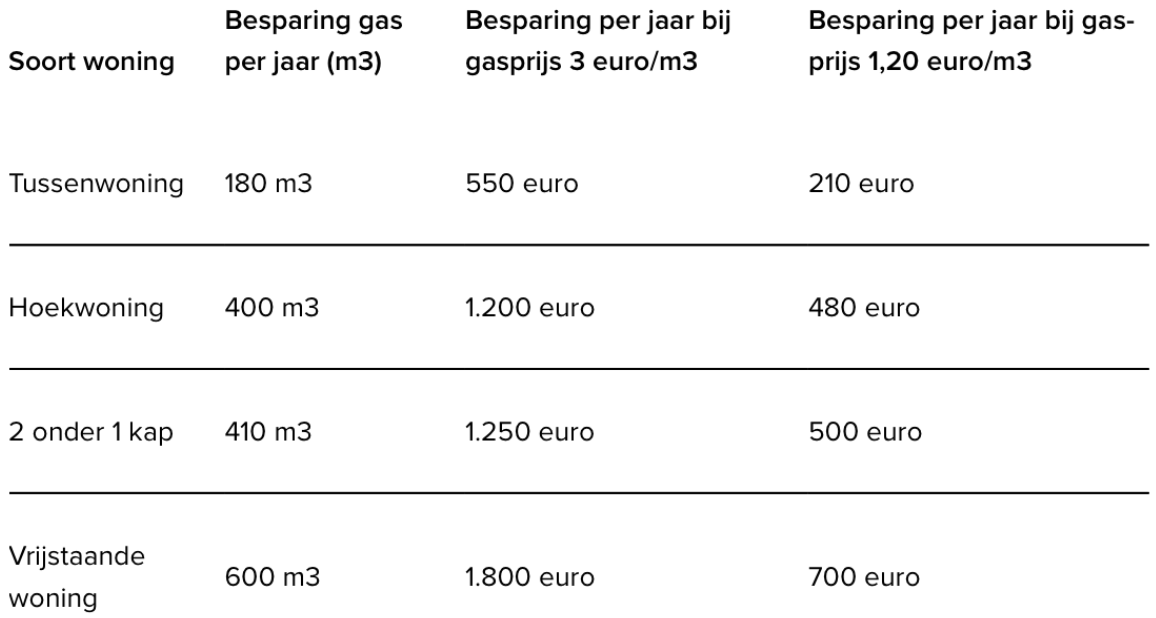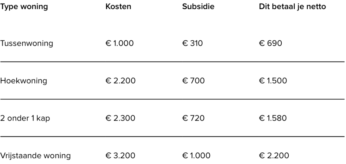 Met onze hulp profiteer je direct van deze financiële voordelen, meer wooncomfort en een duurzamer huis. Hieronder vind je een voorbeeld van de mogelijke kosten en besparingen met subsidie, zodat je een goed beeld krijgt van wat het voor jouw situatie kan opleveren.